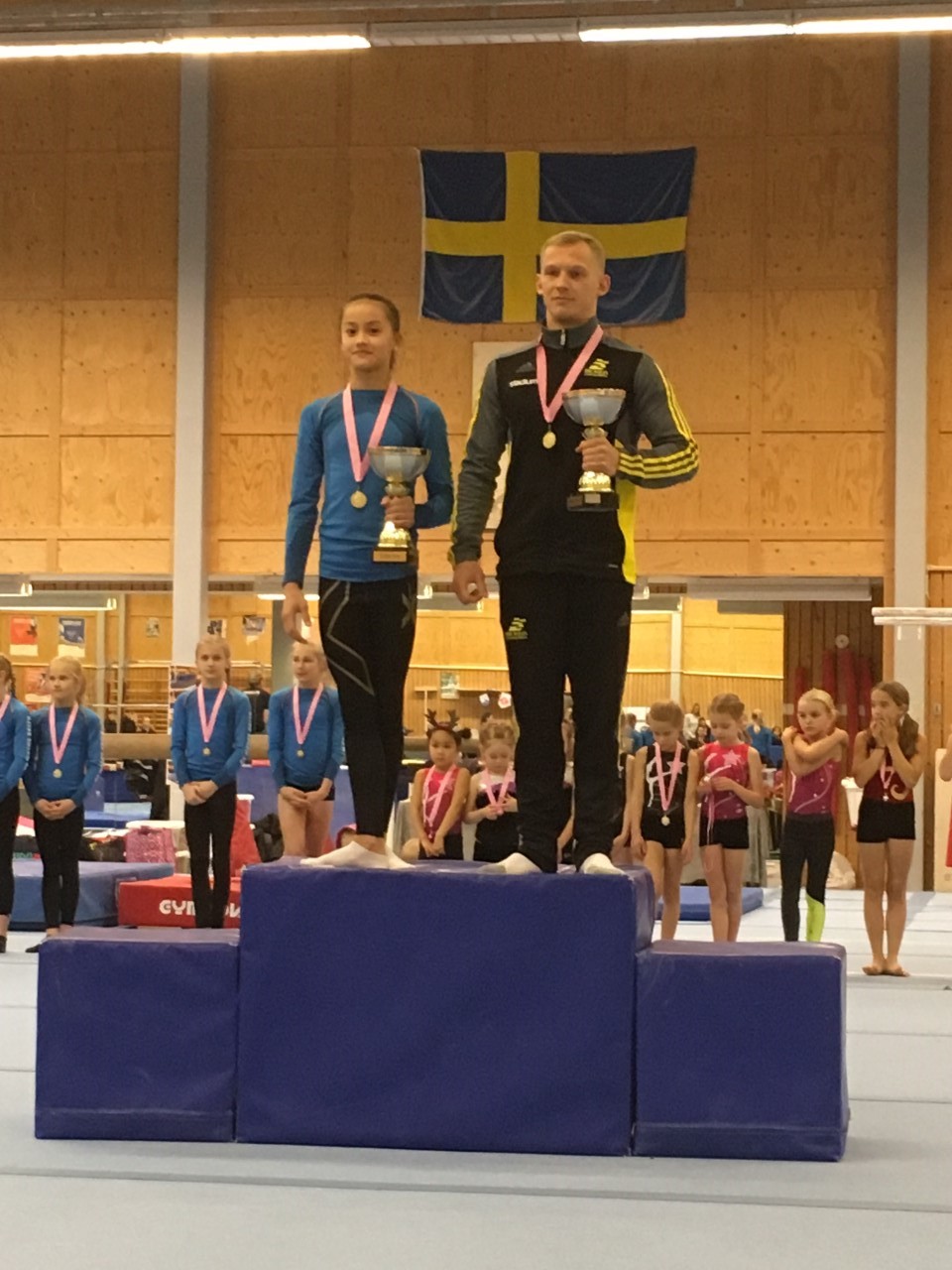Tonya Paulsson från GK Motus Salto i Malmö blev dagens totalsegrare i med imponerande 122,24 poäng i svåra klassen Flickor 4. I killarnas tävling tog Brommagymnasternas duktiga tränare Oleg Navakunski hem sin tredje inteckning med sina 115,57 poäng i tuffaste klassen Pojkar 5, vilket innebär att pokalen stannar för alltid hos Oleg. Grattis!